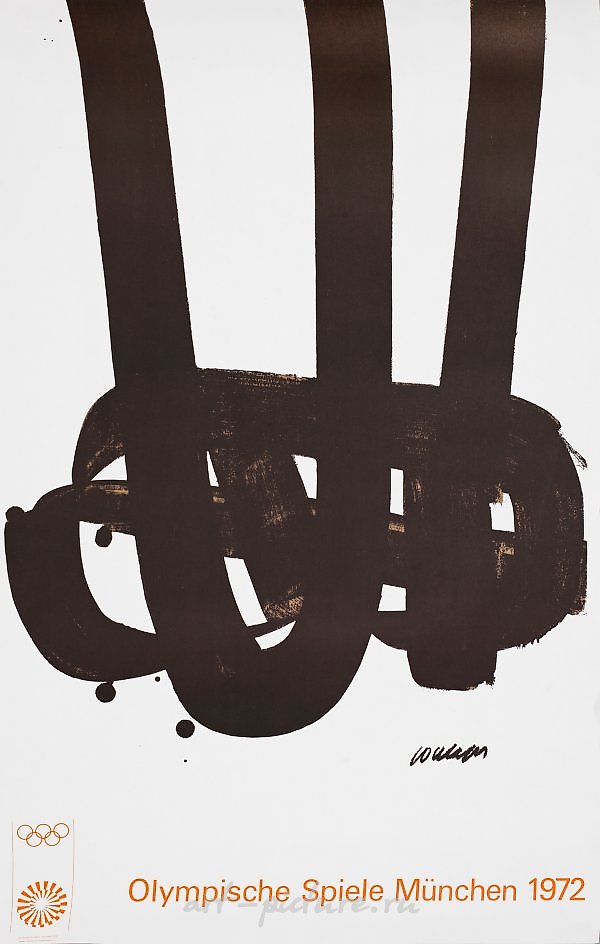 (1919 Rodéz/Aveyron/France - 2022 Nîmes) Composition in black for "Olympic Games Munich 1972". Original title: Color lithograph/paper, 1969/1972. Signed in the stone; poster from the edition "Olympia 72" for the Olympic Summer Games Munich 1972. Minimal marginal discoloration. Sheet approximately 101 x 64 cm. Lithograph in colors on paper, 1969/1972. Signed on the stone. Published as a poster for the Olympic Games in Munich 1972. Minor flaws to the margins.