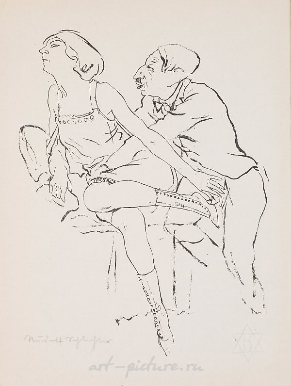 (1890 Calw - 1955 Munich) "Liebesunterhaltung". Original title Lithograph/chamois-colored paper (Watermark: six-pointed star with an enclosed B), 1923. L. and sign.; Sheet 8 from: Die Schaffenden. IV. Jahrgang, 4. Mapp, Euphorion Verlag, Berlin 1923. 40.8 cm x 30.6 cm. Lithograph on chamois-colored paper (Watermark), 1923. Hand-signed.
