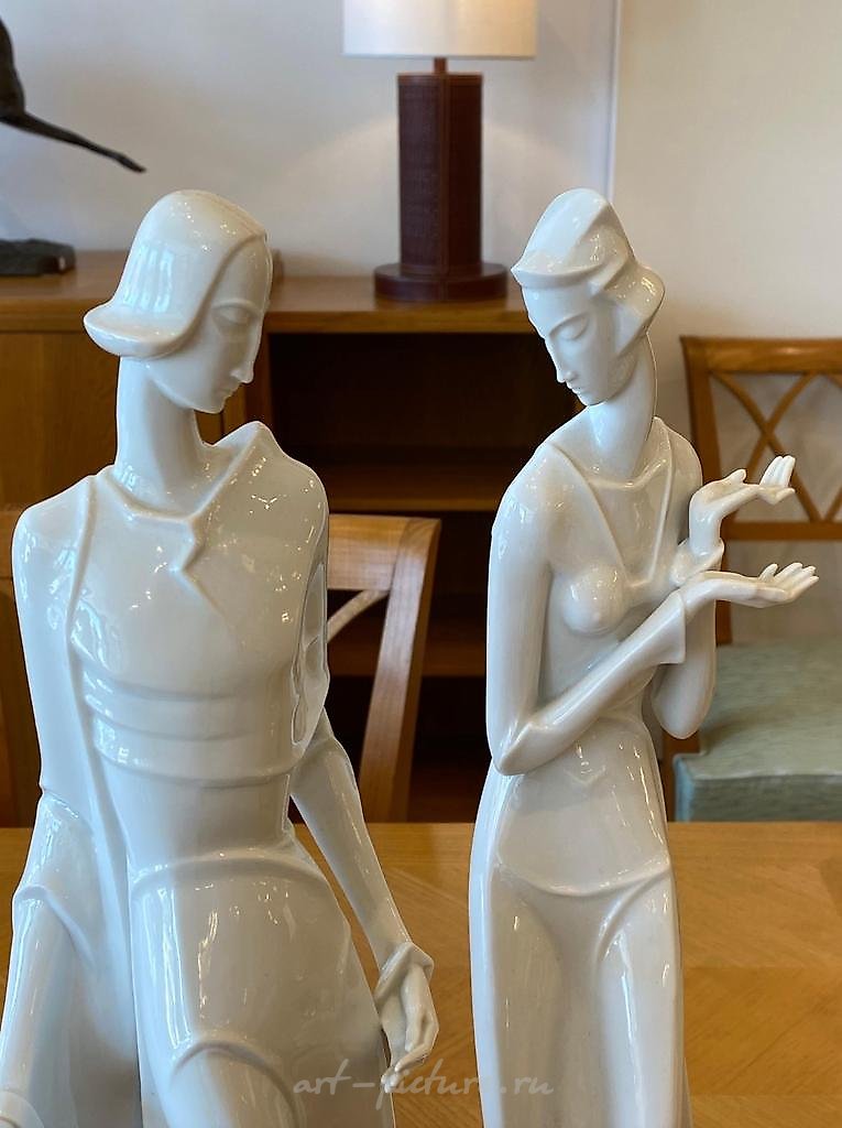Материал, из которого выполнены фигуры – фарфор – действительно играет ключевую роль. Прозрачность и хрупкость, сочетающиеся с прочностью фарфора, делают это произведение идеальным носителем для чувствительности и утонченности, которые так характерны для ар-деко. Я тоже всегда восхищался тонкостью и детализацией, присущими работам в этом материале, что позволяет каждому произведению говорить на языке визуальной поэзии.