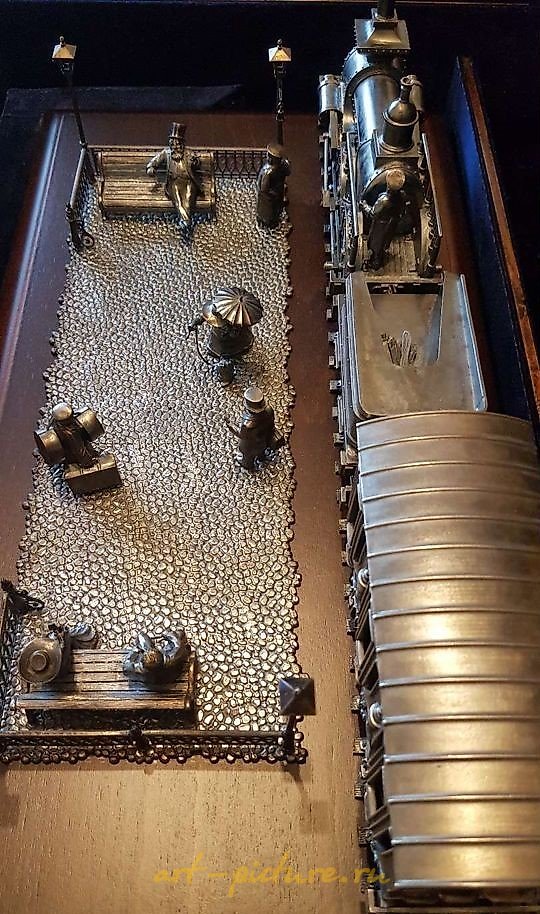 the gift item "Locomotive," was created by order of OAO "Russian Railways" by a jeweler-modeler with 40 years of experience, utilizing the knowledge of the greatest masters of Russia, such as Fabergé, Sazikov, and Khlobnikov.