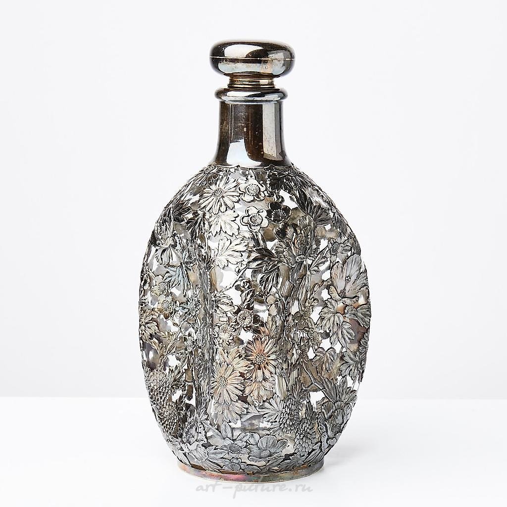 Мне также нравится, что это произведение можно смело относить к категории "искусство серебряного дела". Серебряное покрытие и фигурные детали на графине - это своего рода дань уважения традициям, и это важно в нашем современном мире, где иногда о теряется. Всё это, в сочетании с легкостью стеклянного материала, создает удивительный контраст и уникальность.
