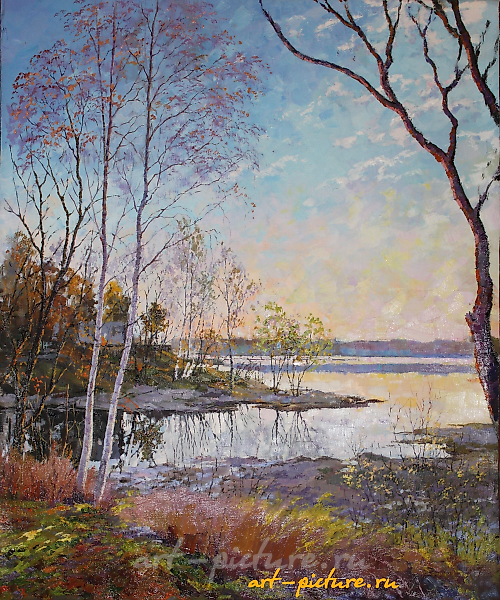 The translation of "Осенняя радость масло, холст" into English is "Autumn Joy oil, canvas."