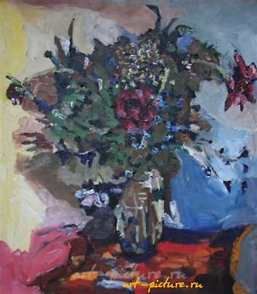 Согласен с тем, что сам по себе букет цветов может показаться банальным. Однако, посмотрите на работу более внимательно. Каждый цветок здесь — это не просто штрих на холсте, а целая маленькая история, которую художник пытается рассказать. К примеру, красные и оранжевые тона на переднем плане могут символизировать не только энергичность, но и страсть, что уже поднимает натюрморт на новый уровень. Меня всегда впечатляет, как разные оттенки могут взаимодействовать и создавать определенное настроение.
