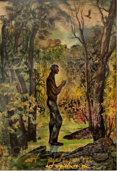 Картина вызывает ощущение глубокой связи с природой. Человек в тёмной одежде словно символизирует обдумывание важного, окружённый осенними красками леса. Чудесный момент уединения, когда природа помогает заглянуть внутрь себя.