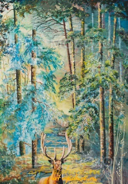 На деле, искусство в таком многослойном контексте, как представленная картина, становится не просто визуальным объектом, но и настоящим философским опытом — едва ли есть что-то более увлекательное, чем погружение в глубины смыслов, скрытых за каждой штрихом кисти художника. На первый взгляд, казалось бы, простое изображение леса и оленя — это нечто большее, нежели просто сцена из природы. Это пространство, в котором переплетаются вопросы существования, красоты и гармонии.