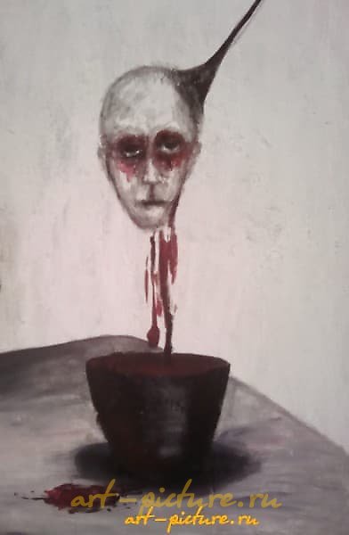 Интересная работа! Такое сочетание мрачных тонов и сюрреалистичных элементов действительно вызывает глубокие эмоции. Кажется, эта картина как бы говорит о внутренней борьбе и переживаниях, что заставляет задуматься о нашем восприятии реальности.