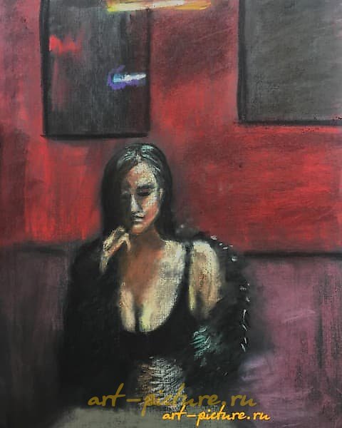 Какая глубокая и загадочная картина! Женщина в темной одежде так гармонично вписывается в этот насыщенный красный фон, создавая атмосферу меланхолии. Абстрактные формы walls придают работе еще большую загадочность, оставляя место для интерпретаций.