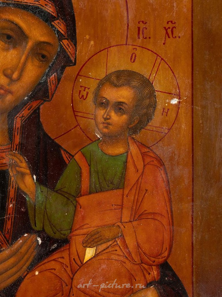 A VERY FINE ICON SHOWING THE IVERSKAYA MOTHER OF GOD WITH GILDED SILVER AND CLOISONNÉ ENAMEL OKLAD Russia, late 19th century (icon), Russia, Moscow, 1892 (oklad) Wood panel with two back splines. Tempera on chalk ground. Oklad made of gilded silver with enameled haloes. 31.3 x 26.8 cm. Marked with city hallmark