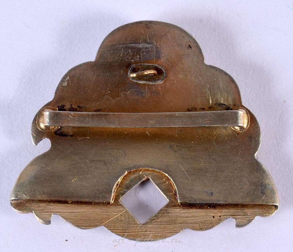 AN ANTIQUE RUSSIAN SILVER AND ENAMEL BUCKLE. 27.6 grams. 5.5 cm x 6.5 cm.
