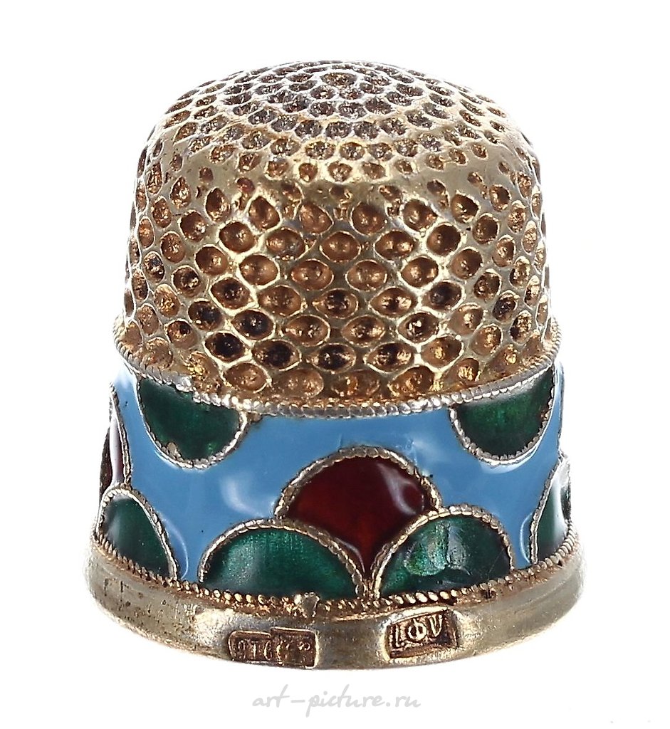 Russian silver gilt and enamel thimble, stamped marks to the rim, 6.8gm, 19mm