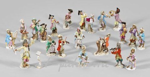 1070.Полная 22-частная коллекция фарфоровых фигур из "обезьяньего оркестра", выполненная Й. Й. Кендлером и П. Рейнике.