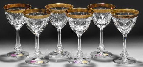 3005.Бокалы Moser-Sherry «Lady Hamilton Gold»: изысканный набор из шести шерри стаканов.