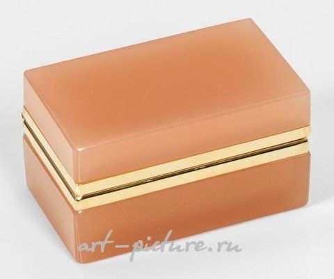2742.Коробка в стиле арт-деко из розового опалесцентного стекла с металлической крышкой