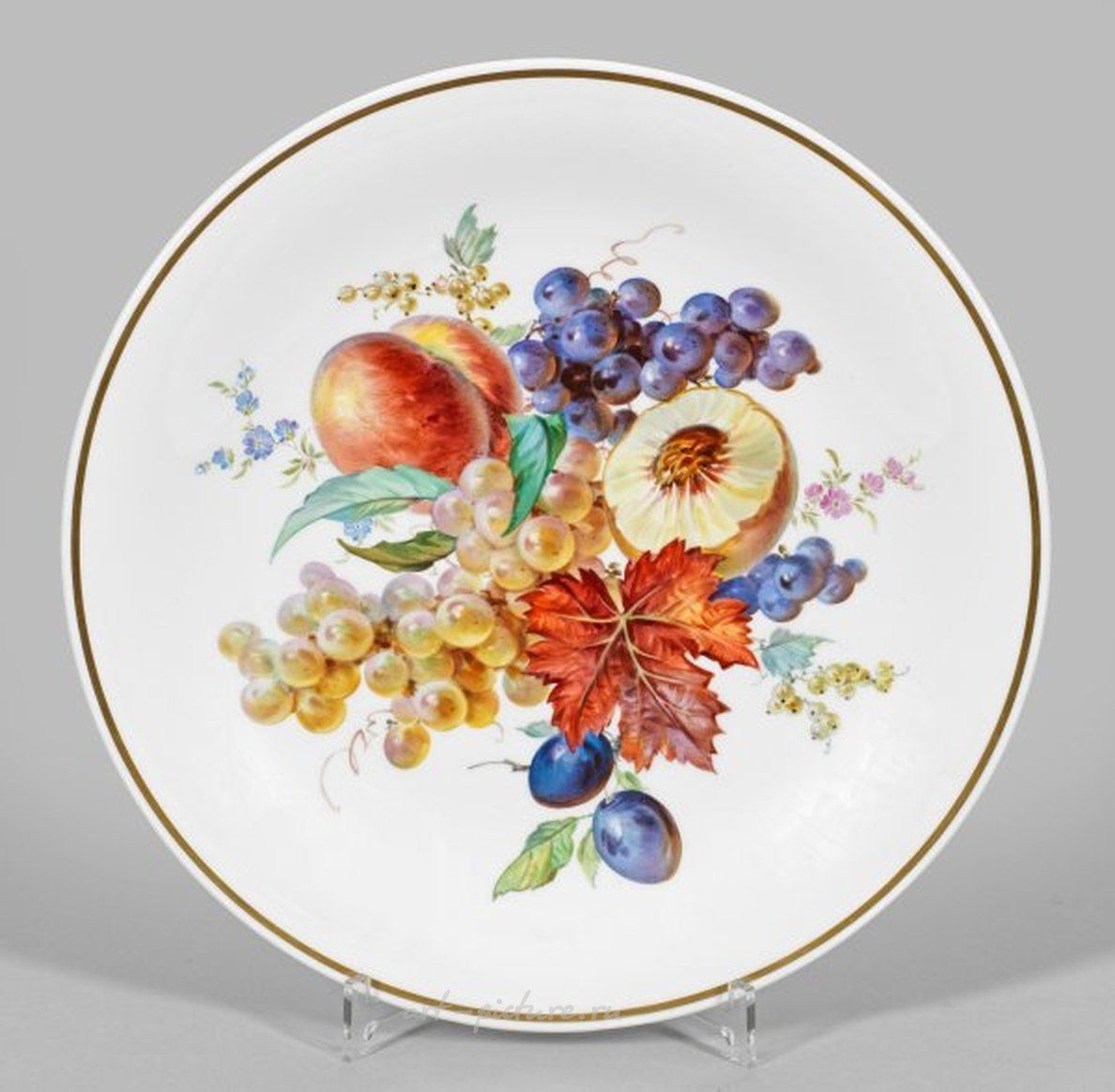 "Большая фарфоровая настенная тарелка, тонко расписанная букетом фруктов в манере профессора Ю.Э. Браунсдорфа",