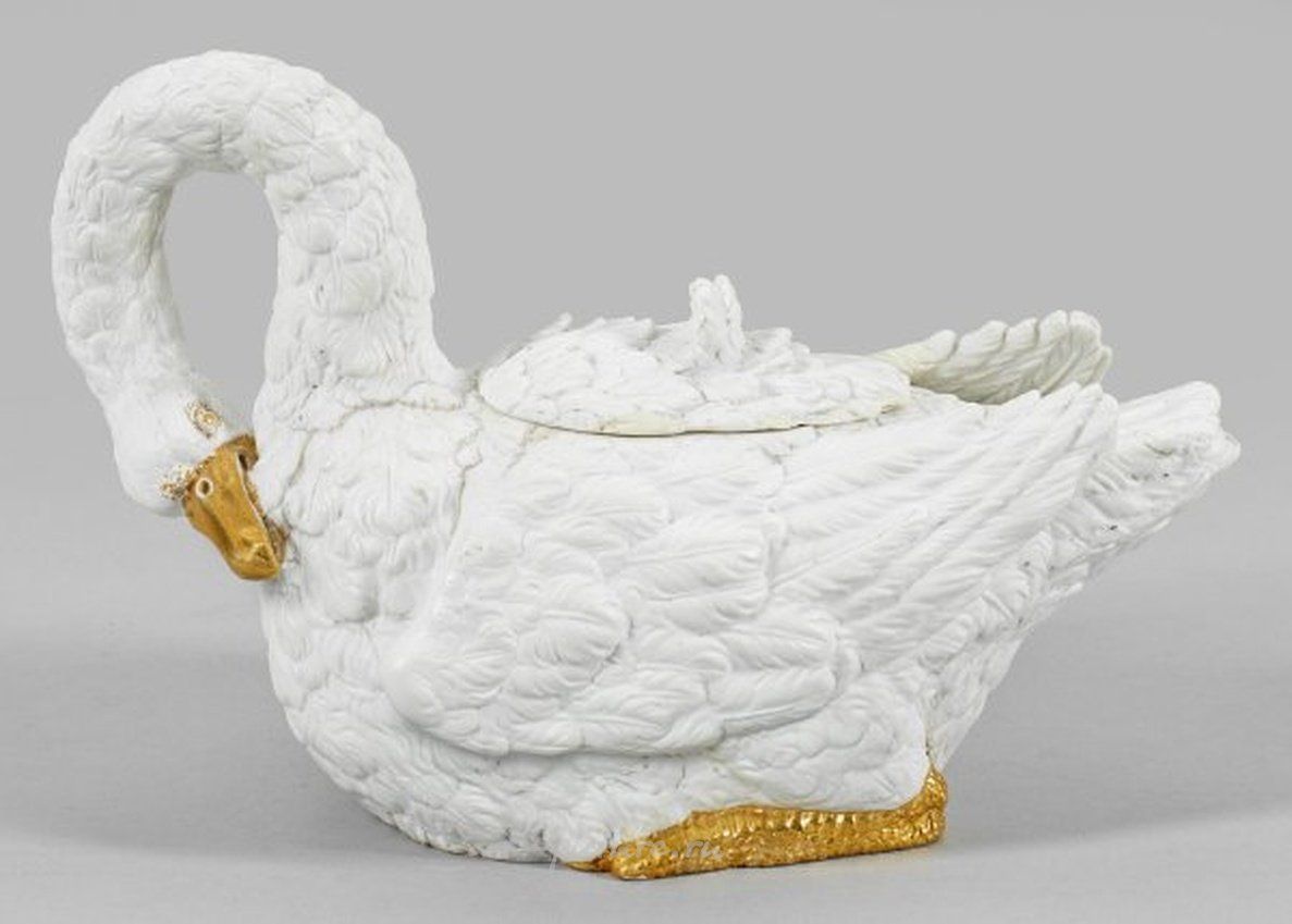 "Крупная бисквитная фарфоровая фигура лебедя середины XIX века в виде коробки с крышкой или небольшого кувшина",