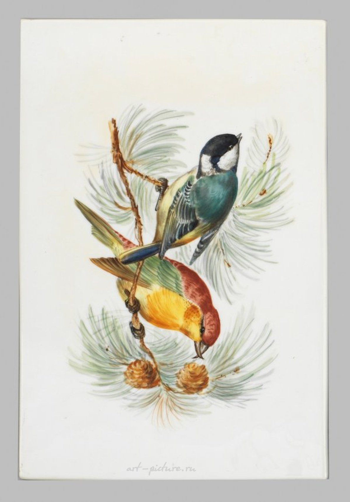"Фарфоровая пластина "Птицы на сосновой ветке" KPM Берлин",