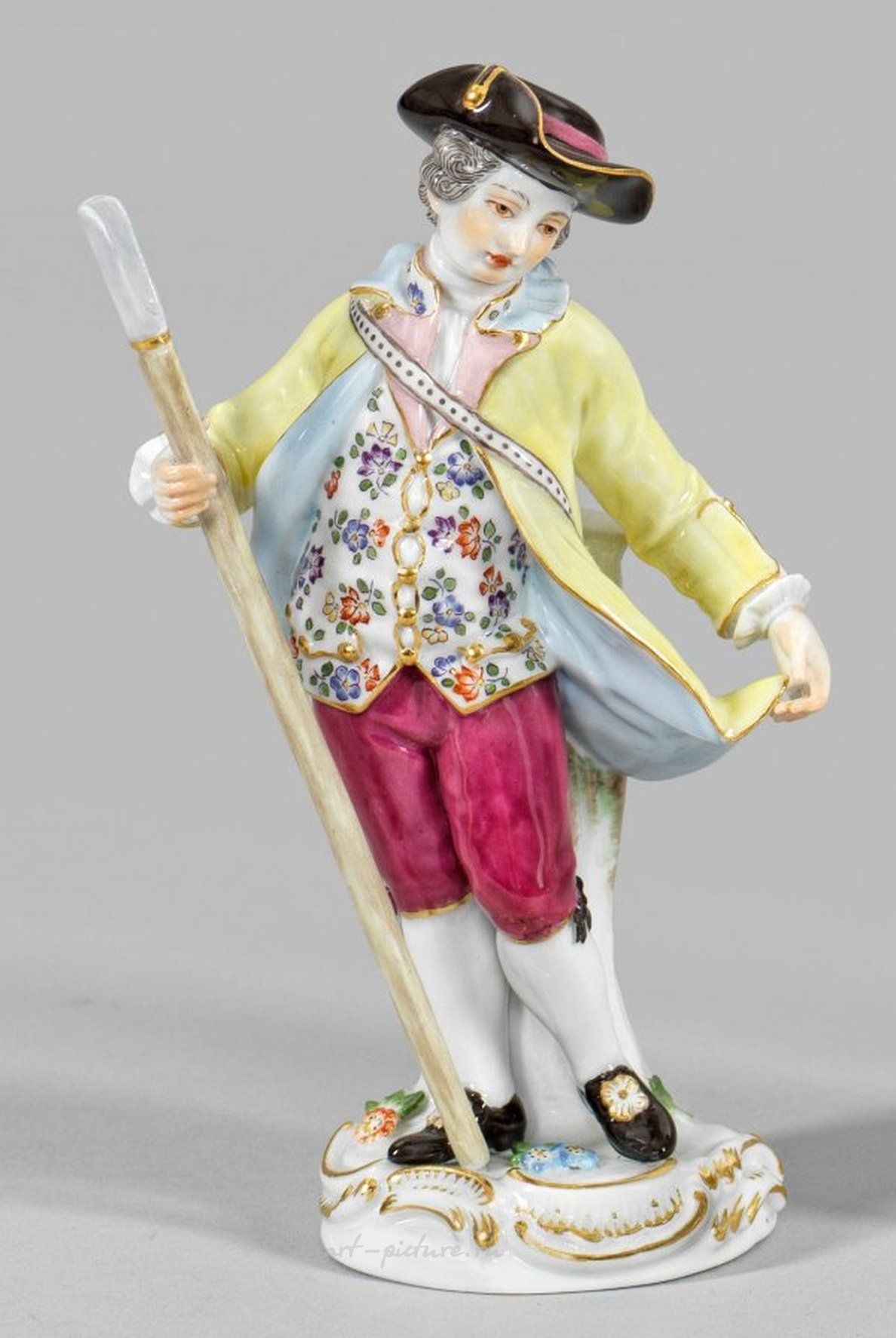 На рококо-рельефе находится фарфоровая статуэтка садовника-ребенка с посохом. Основание полихромно раскрашено с золотым декором. Это работа Иоганна Иоахима Кандлера или выполнена по его дизайну с номером модели 60338. Фигурка имеет отметку в виде перекрещенных мечей и изготовлена в Мейсене. Этот конкретный экземпляр был произведен после 1973 года. Высота фигурки составляет 13 см.