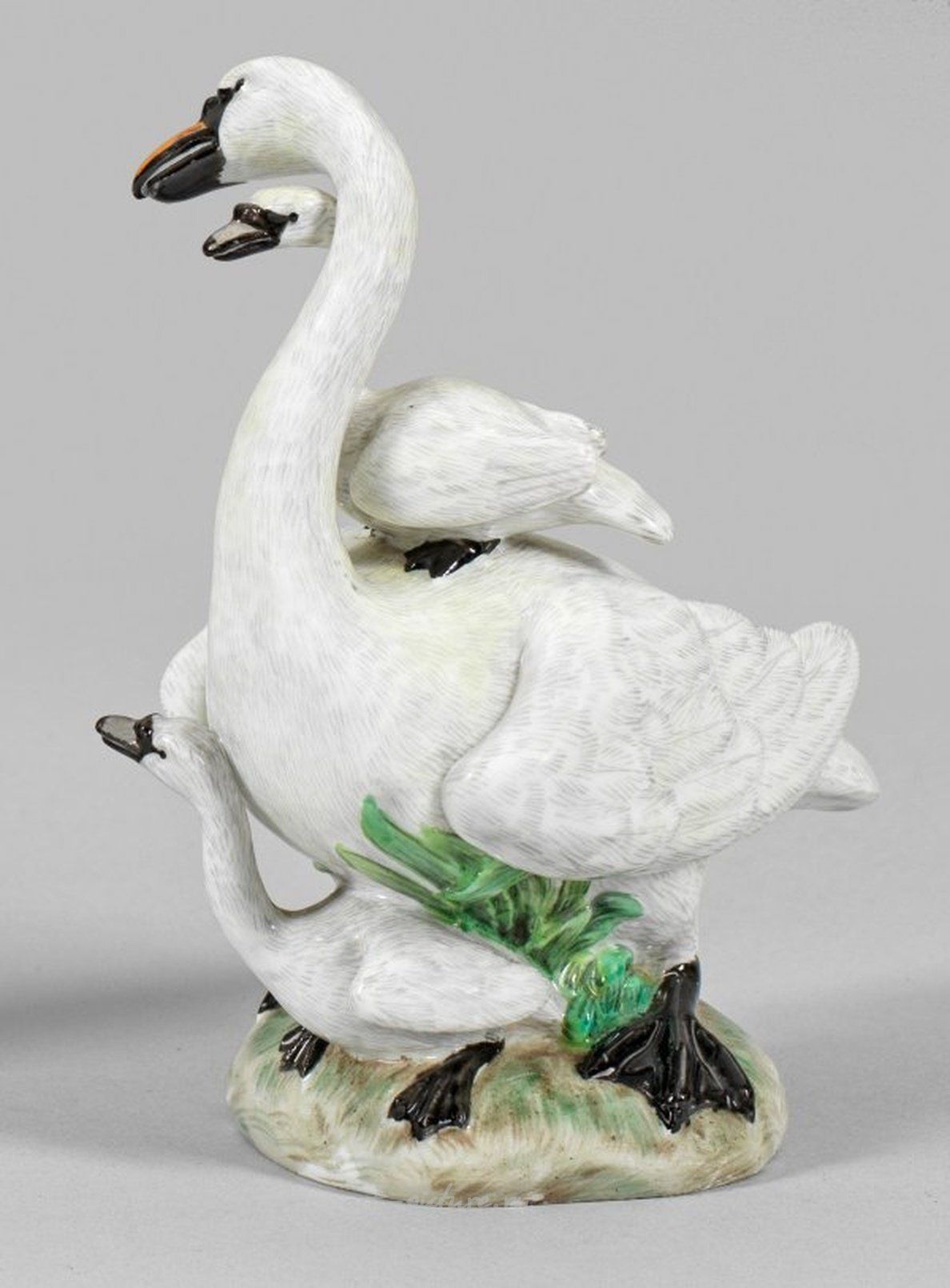 "Лебедь с двумя малышами: керамическая фигура из Мейсена",