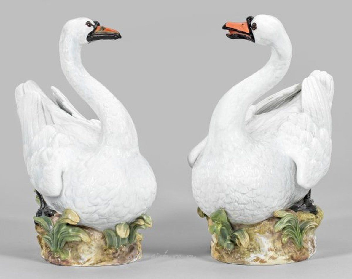 "Большие фигурки лебедей из Мейсенского фарфора",