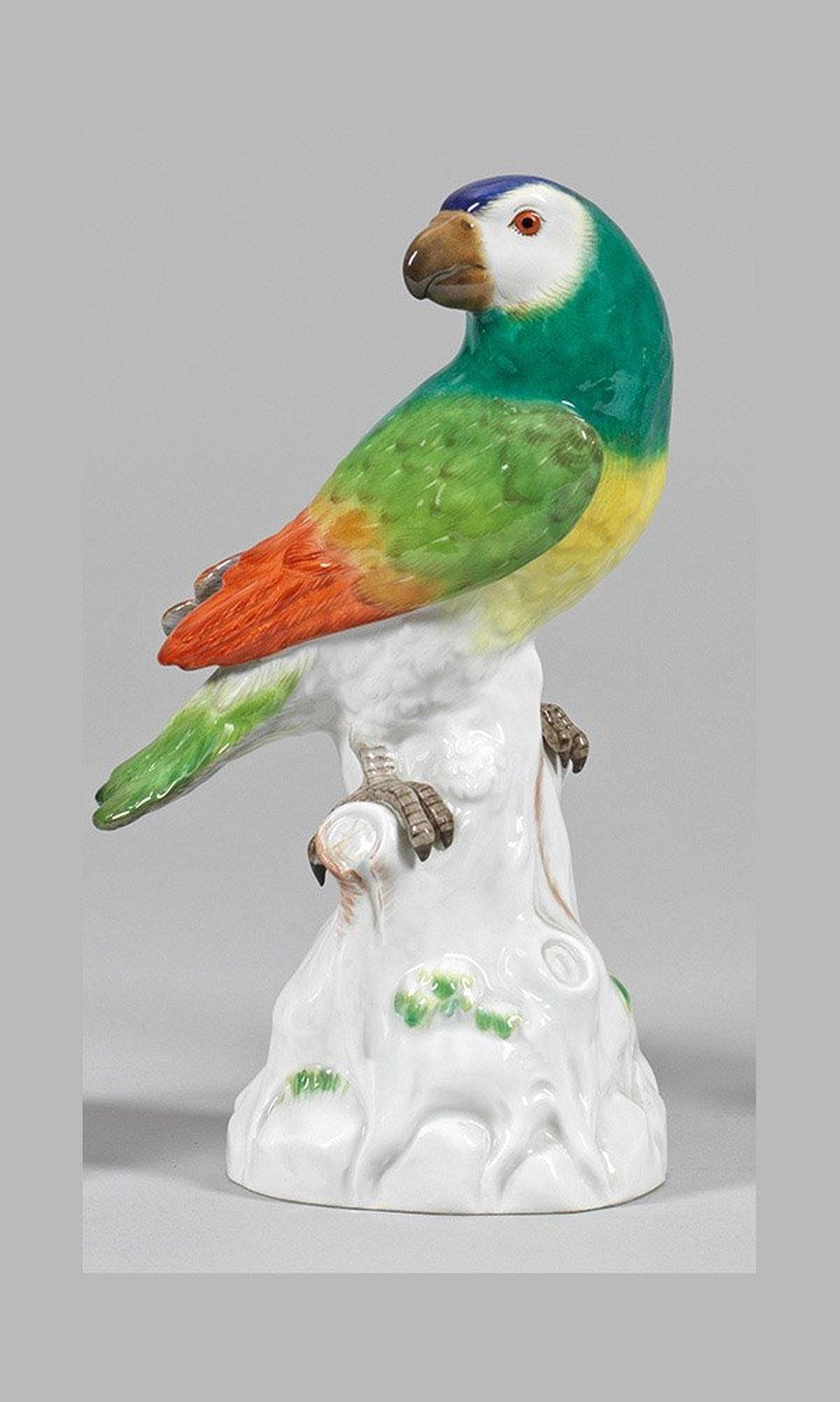 "Фарфоровая фигурка попугая на стволе из Мейссена",