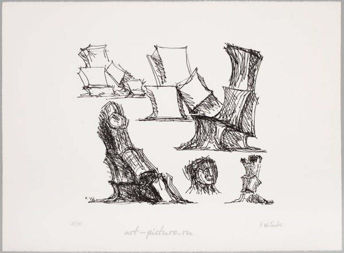 Фриц Вотруба (1907 Вена - 1985 там же) Безымянная литография / Arches-Velin (под водным знаком), 1973 г. Подписано и пронумеровано в камне монограммой. Размеры примерно 37 см x 44,5 см. Лист 56,5 см x 77 см. Литография на тканевой бумаге фирмы Arches, 1973 г. Подписано и пронумеровано 29/90. Из портфолио "Hommage à Picasso", том 2, опубликованного издательствами Propyläen Verlag в Берлине и Pantheon Press в Риме.