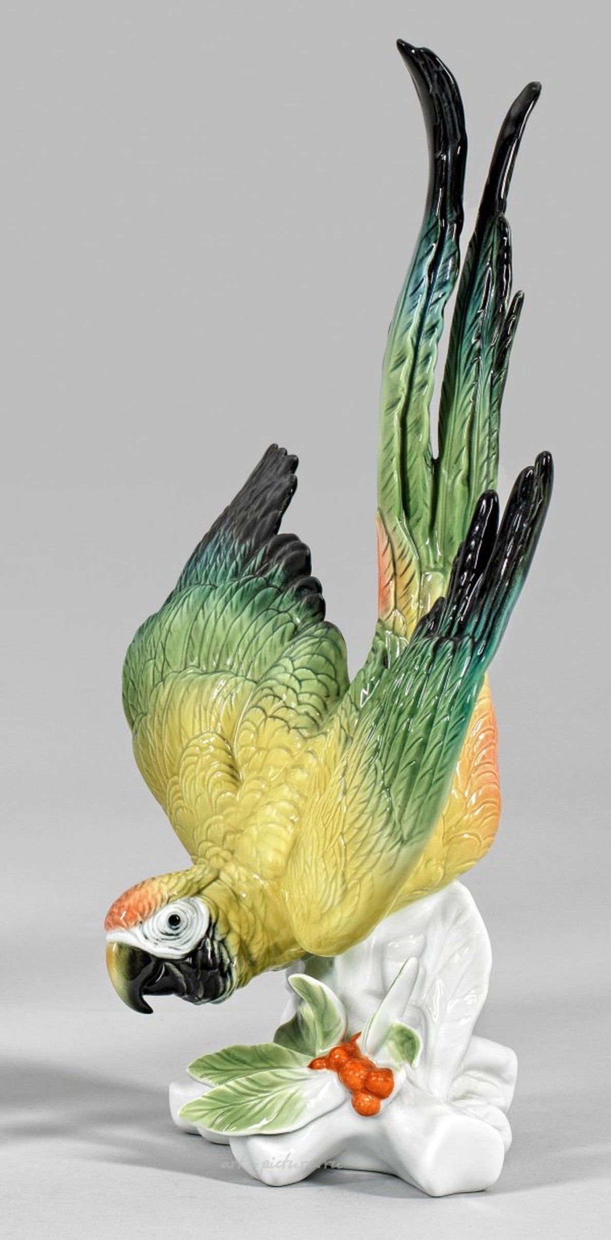 "Фарфоровый попугай с расправленными крыльями и вытянутым пером хвоста из коллекции Северной Германии",