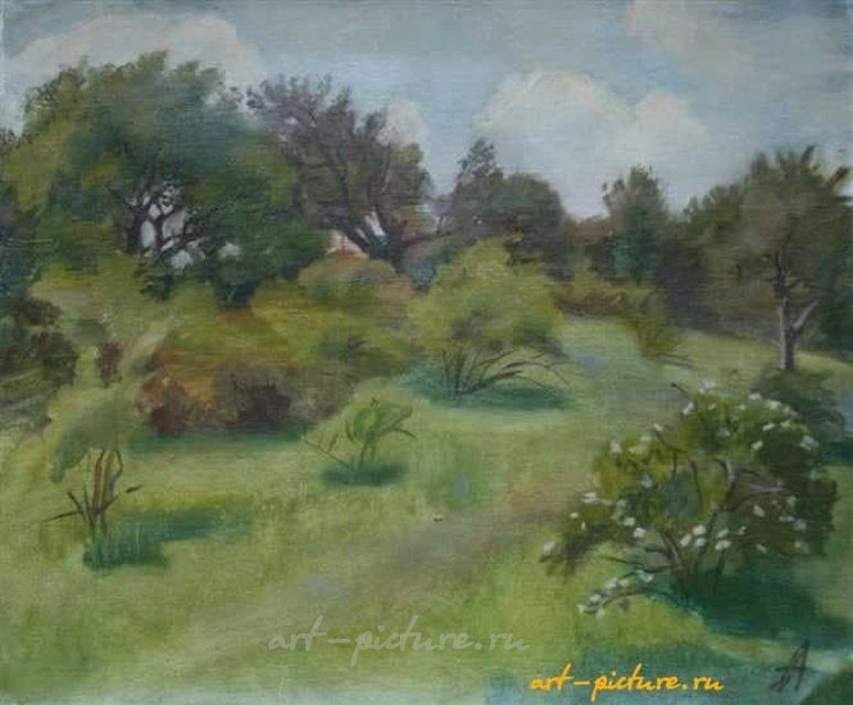 Особенно меня восхищает способность художника передать не только визуальные детали, такие как буйная зелень травы и густота листвы деревьев, но и то атмосферное состояние, которое оно создает. Да, действительно, в каждом мазке чувствуется глубокое единство с природой, и, глядя на его работы, невольно начинаешь задумываться о том, как важно сохранять это единство в нашем воображении и сердцах.