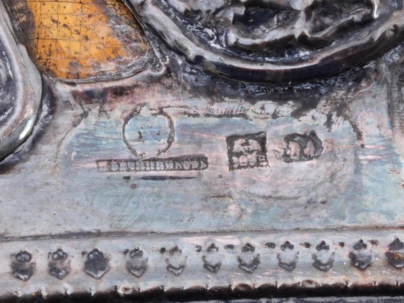 Роспись в смешанной технике: яичная темпера, гипс и левкас на деревянной доске. Серебряная риза или оклад с рельефным декором, гравюрами и драгоценными камнями. Клеймо серебряной пробы 84 пробы и клейма изготовителя находятся в нижней части ризы. Обратная сторона иконы покрыта бархатом. Владимирская икона - византийская икона XII века, представляющая собой
