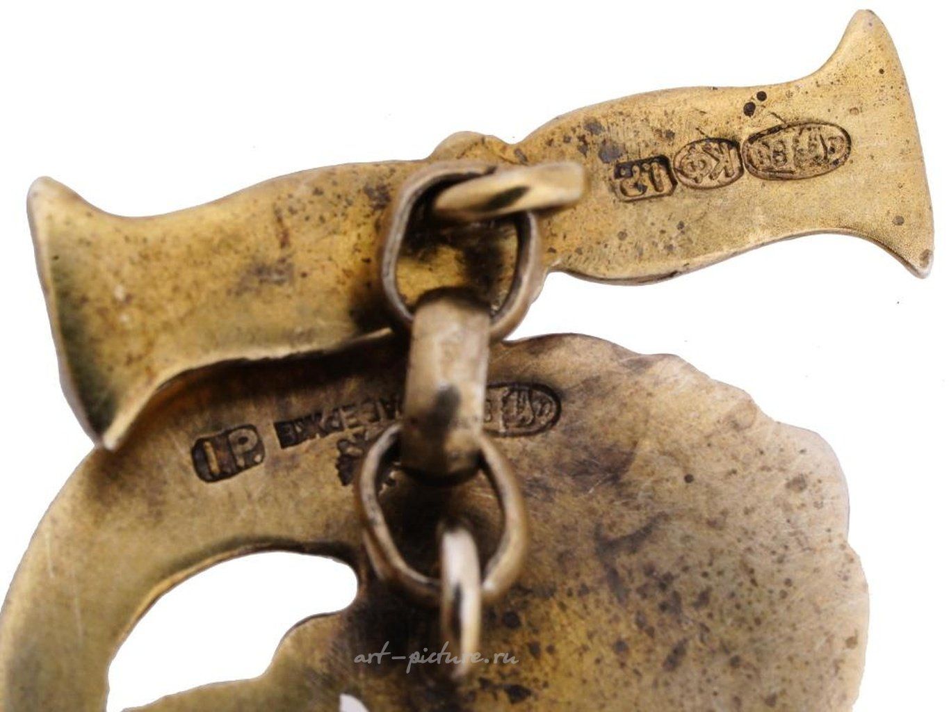 Глаза рыб украшены кабошонами из зеленого нефрита. На каждом изделии есть клеймо стандарта серебра 88 пробы и отметки изготовителей на обратной стороне. Общий вес: 23 грамма. Русские Ювелирные Изделия, Столовое Серебро И Предметы Коллекционирования.