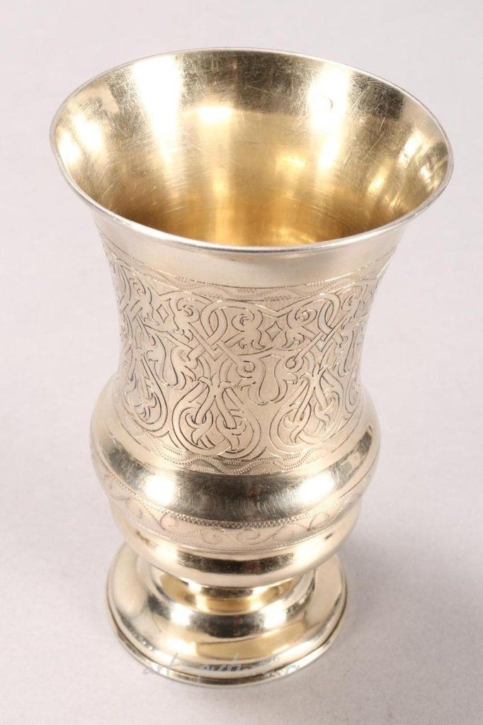 Помечено, Москва, 84, маркировка производителя стерта, ассеятор Андрей Антонович Ковальский, с марками импорта Латвии, в форме чертополоха, с гравированным витым узором на ступенчатой круглой основе, общий вес 109 г, высота 11,5 см.