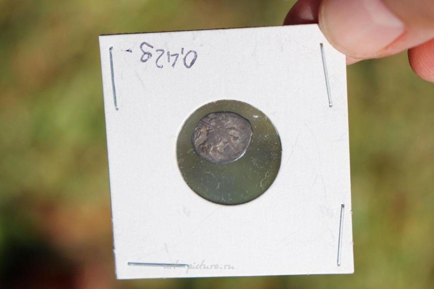 Русская серебряная копейка, Иван IV, "Грозный". 1540-е годы. "Проволочные деньги", 0,42 г. Эта монета является подлинной серебряной копейкой, выпущенной во время правления Ивана IV, "Грозного". Часто называется "проволочными деньгами" из-за способа изготовления. Вес: 0,42 г; Размер: 13 мм х 10,5 мм; Аверс: Царь в образе Святого Георгия на коне, убивающего змея