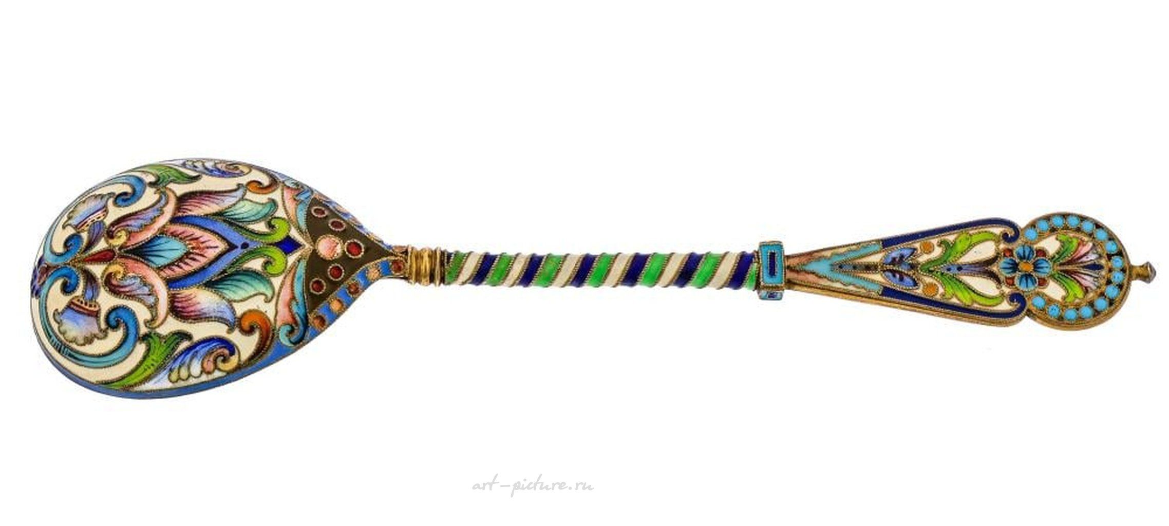Финская серебряная эмальная ложка с золочением. Маркировка в чаше. Начало 20 века. Длина 6 дюймов.