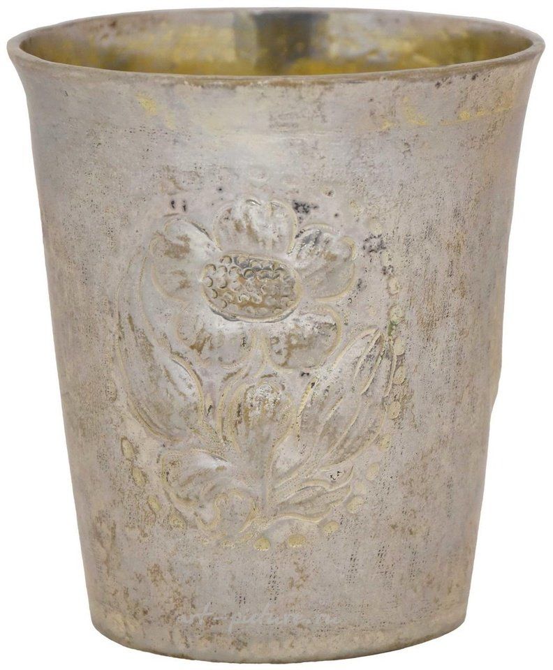 Русский серебряный стакан "Цветы". - Россия, начало 18 века. - 7,5x8 см, 65 г. Серебро; литье, позолота. Маркировка: Московская ежегодная марка "1710", марка мастера. Состояние: по запросу.