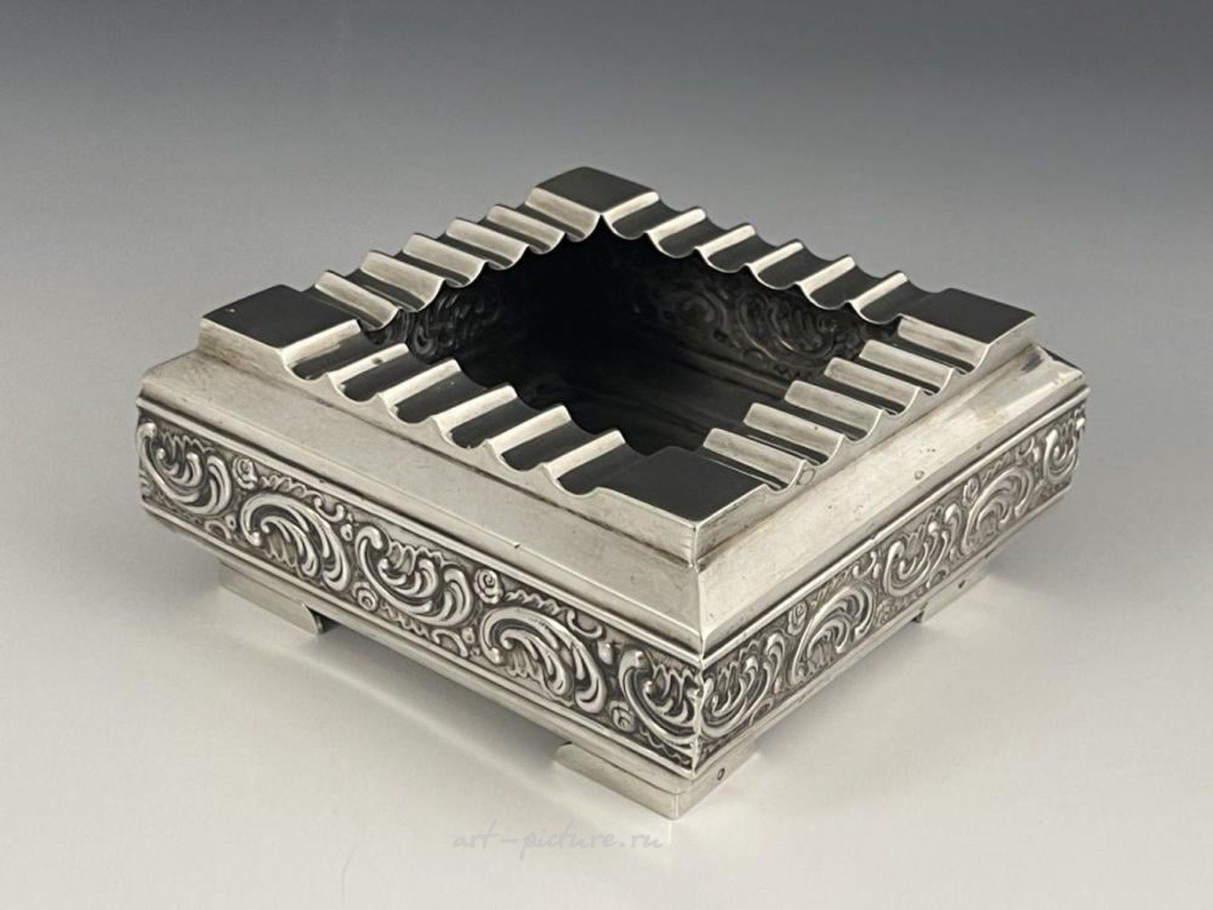 Карла Фаберже, императорская русская серебряная пепельница, БА, Санкт-Петербург, около 1900 года.