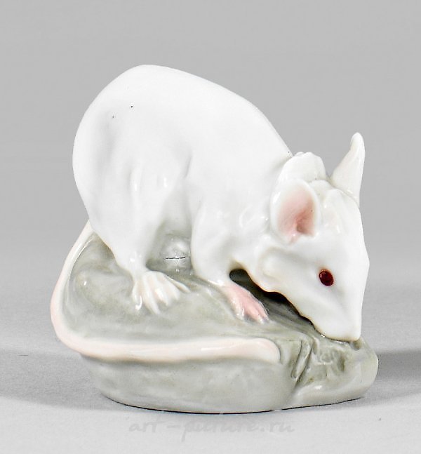 零星的彩釉底画。由伊瓦·蒂尔伯格于1905年至1910年左右创作。型号X 132。剑痕。高度:5厘米。来源:来自德国北部一位重要私人收藏家的遗产。一只新艺术派风格的瓷质老鼠雕像。萨克森梅森,约1910年至1923年间。