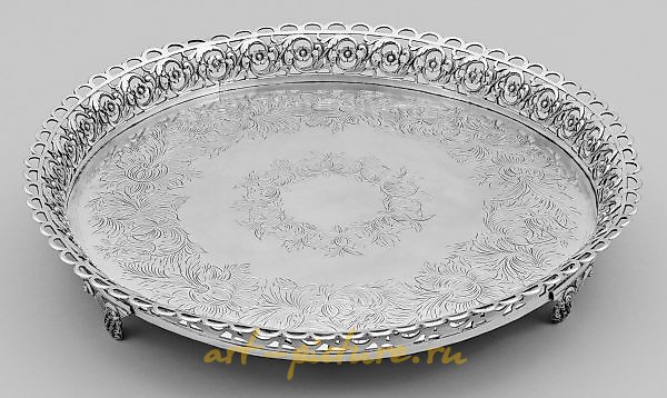 Какой невероятный поднос! Его изысканный дизайн и художественное гравирование просто завораживают. Настоящий шедевр, который отлично дополнит как сервировку на торжественном ужине, так и декор интерьера.