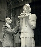 Here is your translated text in Simplified Chinese: --- 雷蒙·里瓦尔(Raymond Rivoire)(全名:Antoine Joseph Léon Raymond Rivoire)(1884年10月21日生于法国阿列省屈塞——1966年9月27日卒于法国巴黎,享年81岁11个月6天),法国雕塑家。他的作品曾在1924年夏季奥运会和1928年夏季奥运会的艺术比赛中展出。 生平 雷蒙·里瓦尔出身于中产阶级家庭。他曾就读于巴黎美术学院,并且是让-安托万·安贾尔贝尔的学生。他主要以大理石人物雕塑而闻名。里瓦尔被认为是先锋派的一员,主要使用大理石、青铜和花岗岩创作。他于1905年在法国艺术家沙龙展出作品,之后又在秋季沙龙展出。作为法国艺术家协会的成员,他于1921年获得银奖,1929年获得金奖。里瓦尔还为“诺曼底号”远洋客轮设计过内部,该轮于1942年因火灾沉没。1932年,他被授予法国荣誉军团骑士勋章。 里瓦尔的雕塑《阿耳忒弥斯》,常被称作《带狗的女人》或《狩猎女神戴安娜》,是装饰艺术(Art Deco)风格的代表作。这尊银饰青铜像创作于1925年左右,连底座尺寸为80 x 84 x 20厘米。较小的版本为36 x 38 x 9厘米。以《浴女》(Baigneuse)为名的大理石雕塑收藏于巴黎卢森堡博物馆。1925年,他还为塞夫尔工厂创作了两款瓷雕塑,分别名为《运动员》(Athlete)和《浴女》(Baigneuse)。这两件瓷塑(也有银饰镀金属和青铜版)尺寸为9 x 5 x 14厘米,最初用作书挡。