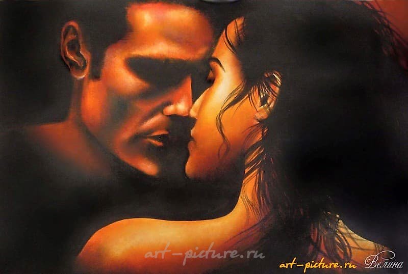 Как можно пройти мимо такой потрясающей работы? Эта картина не просто изображение, а отражение страсти и глубокой эмоциональной связи между людьми. Теплые оттенки создают атмосферу интимности, а игра света и тени придает сцене загадочность — хочется остановиться и задуматься о своих чувствах!