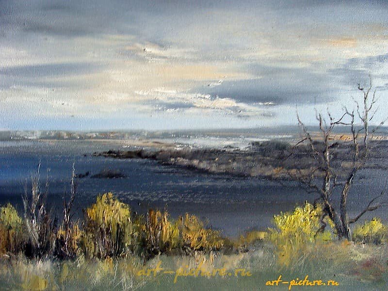 Какой красивый пейзаж! Вода действительно отражает атмосферу спокойствия, а контраст между серыми облаками и голубым небом создает удивительное настроение. Осенние деревья придают картине особую глубину и заставляют задуматься о смене времен года.