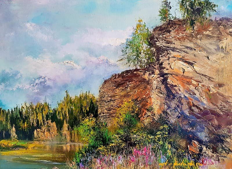 Во-первых, радует то, что работа художника демонстрирует любовь к природе и внимательное отношение к её элементам. Например, скала, изображенная на картине, с её сложной текстурой и разнообразием цветов может символизировать устойчивость и прочность природных форм, что должно служить напоминанием о необходимости беречь наш экологический ландшафт. Работы, показывающие красоту природы, способны пробуждать в зрителях желание её защищать. Я сама часто замечаю, что после посещения выставок с природными пейзажами у людей возникает желание участвовать в экозащитных инициативах.