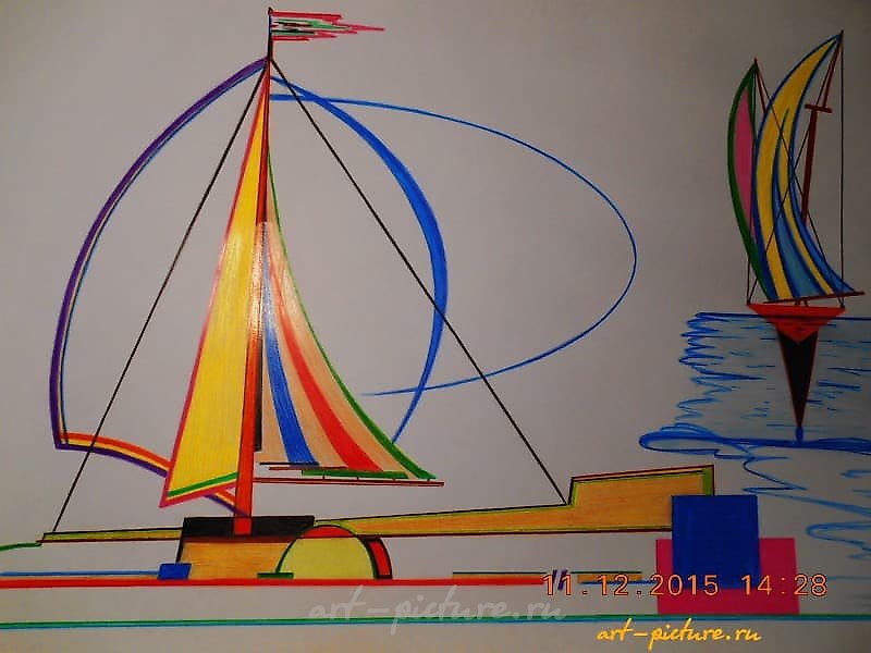 Какая яркая и жизнерадостная работа! Эти яхты словно несутся по волнам, ощущая свободу и легкость. Люблю, когда искусство передает такие сильные эмоции через абстрактные формы и насыщенные цвета!