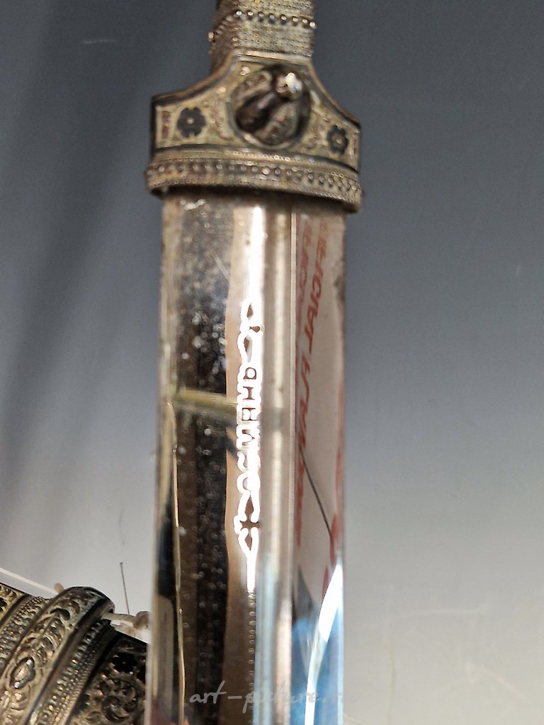 优美的俄罗斯匕首,黑银手柄和带有1913年国家铭文的鞘。