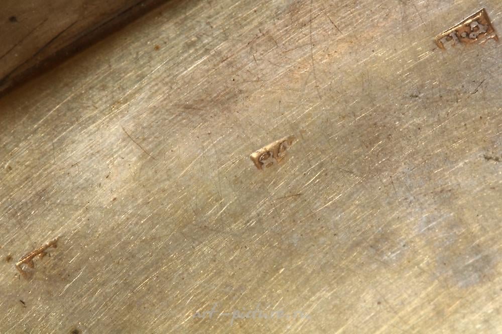 标记为84,法官印章尼古拉·杜布罗文,矩形形状,带有可折叠的盖子,盖子上装饰有三个骑马的士兵,带有曲线边框,背面有镜子,底座上有建筑场景,镀金内饰,总重量64克(包括镜子),尺寸为6.5厘米x 4厘米。来源:已故的弗雷德里克·辛菲尔德收藏,悉尼,新南威尔士州,1938-2008年。