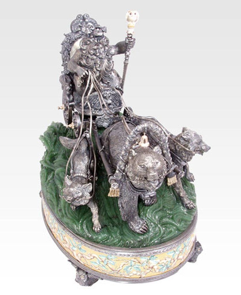 Cеребряная композиция, статуэтка Алексея Баранова "Леший", в серебре была сделана в 10 экземплярах. Композиция «Леший» , выполненная в технике ювелирная пластика. Автор- член Союза Художников России Баранов Алексей Георгиевич. Дата создания 2004г. Серебро 925, ювелирная пластика, бриллианты, оникс, тигровый глаз, нефрит, кремень.
